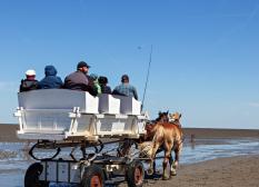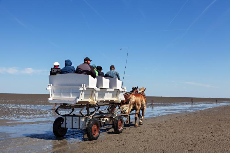 Was auf keinen Fall bei einem Aufenthalt in Duhnen fehlen darf, ist eine Wattwagen-Fahrt, bei der Sie den Wechsel der Gezeiten hautnah miterleben und viel über die Tier- und Pflanzenwelt lernen. Mit hochgesetzten Pferdekutschen, ausgerüstet für jede Wetterlage, unternehmen Sie eine Fahrt mitten durch das Niedrigwasser des Nationalpark Wattenmeer.
