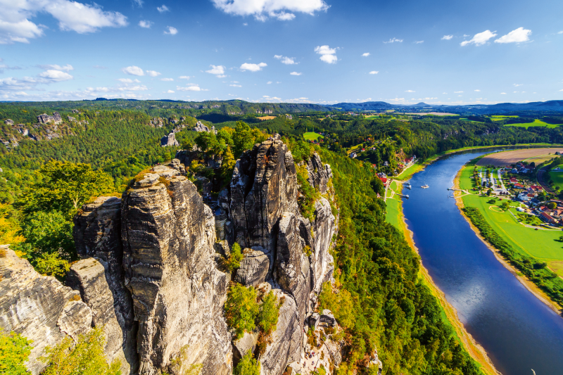 Bummel durch den sehenswerten Park von Schloss Pillnitz. Anschließend Fahrt in das berühmte Elbsandsteingebirge mit seiner bizarren Felsenlandschaft. Sie sehen die Festung Königstein, die Bastei-Felsen mit ihrer berühmten Aussicht sowie die spektakuläre Bastei - Brücke.