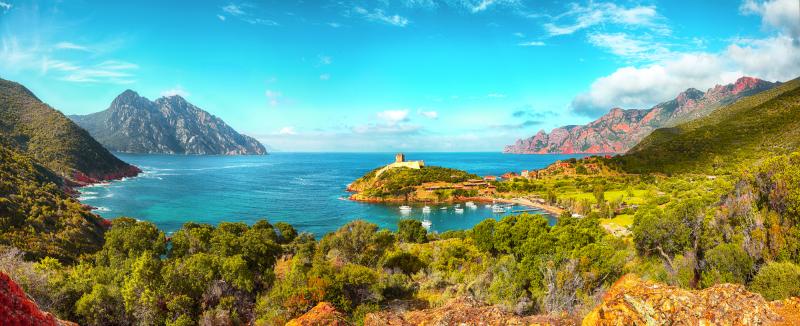 Insel der Schönheit“ ist der Beiname Korsikas – doch handelt es sich um eine wilde Schönheit. Bis zu 2.700m hohe, schroffe Berge aus weißem Kalkstein, tiefe Schluchten und malerische Gebirgsdörfer prägen das Innere. Mächtige Festungen berichten davon, dass die Insel über Jahrhunderte begehrt war.